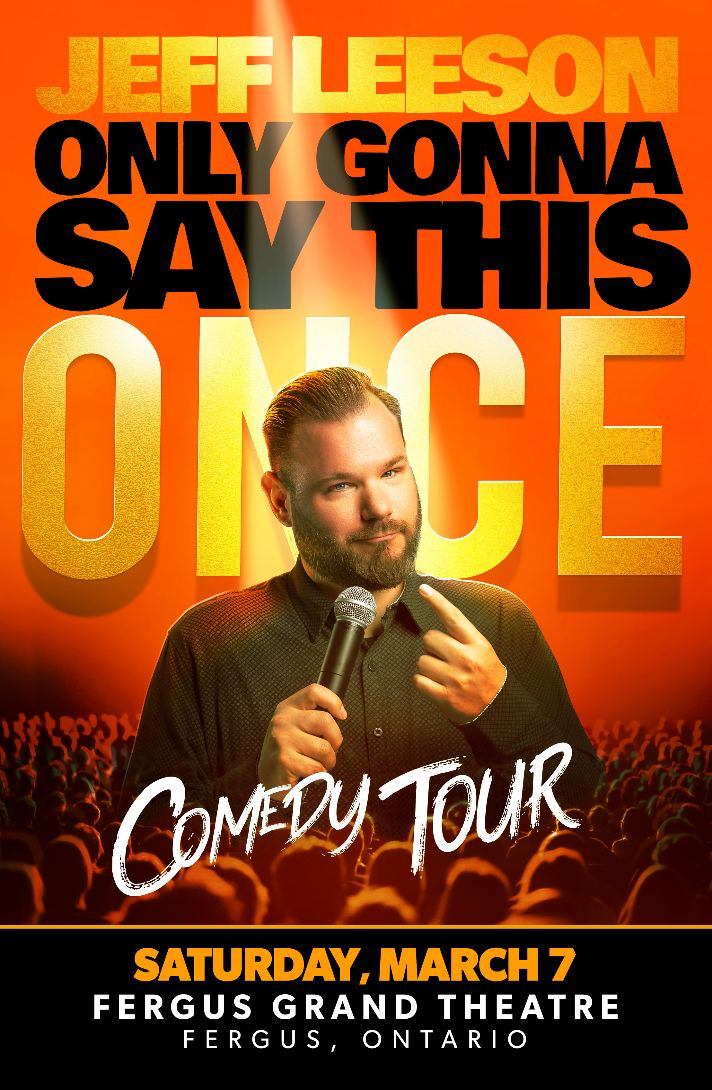 Internationally touring comedian Jeff Leeson returns to Fergus for a night of live stand up you will never forget!