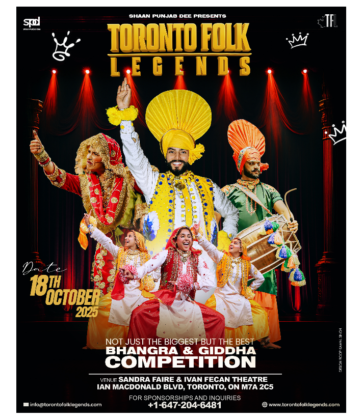 Get ready for North America’s Best Bhangra and Giddha competition. Join us on October 18th, for a celebration of vibrant culture, incredible talent, and unforgettable performances. Witness the magic of Bhangra and Giddha like never before!